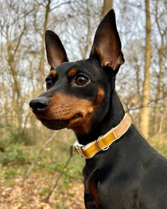 Handmade Mellow Yellow Hemp Dog Collar, Harness & Lead Set
