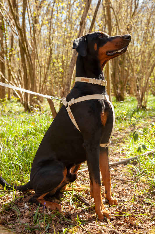 Handmade Tobacco Tan Hemp Dog Collar, Harness & Lead Set
