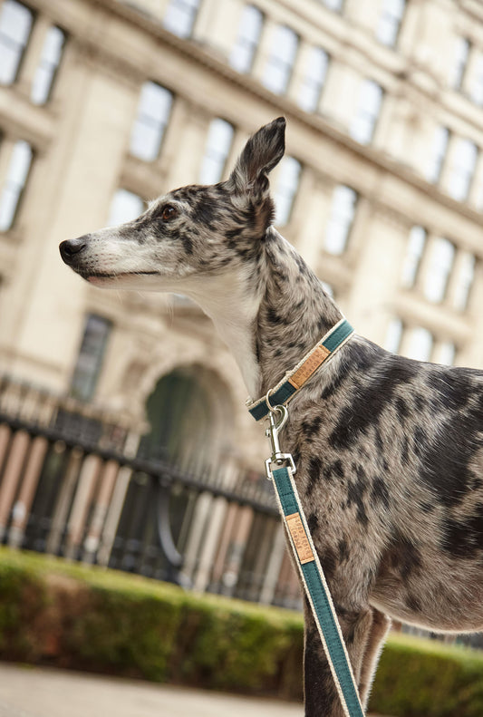Handmade Teal Green Hemp Dog Collar, Harness & Lead Set